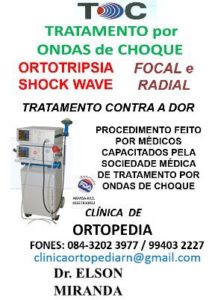 Dr. Elson Miranda Clínica de Ortopedia – Dr. Elson Miranda Av. Rodrigues Alves, 800 – sala: 501 – Bairro Tirol – Natal / RS Ed. Tyrol Business Center. Tel. (84) 3202 3977 / 99403-2227 E-mail: clinicaortopediarn@gmail.com